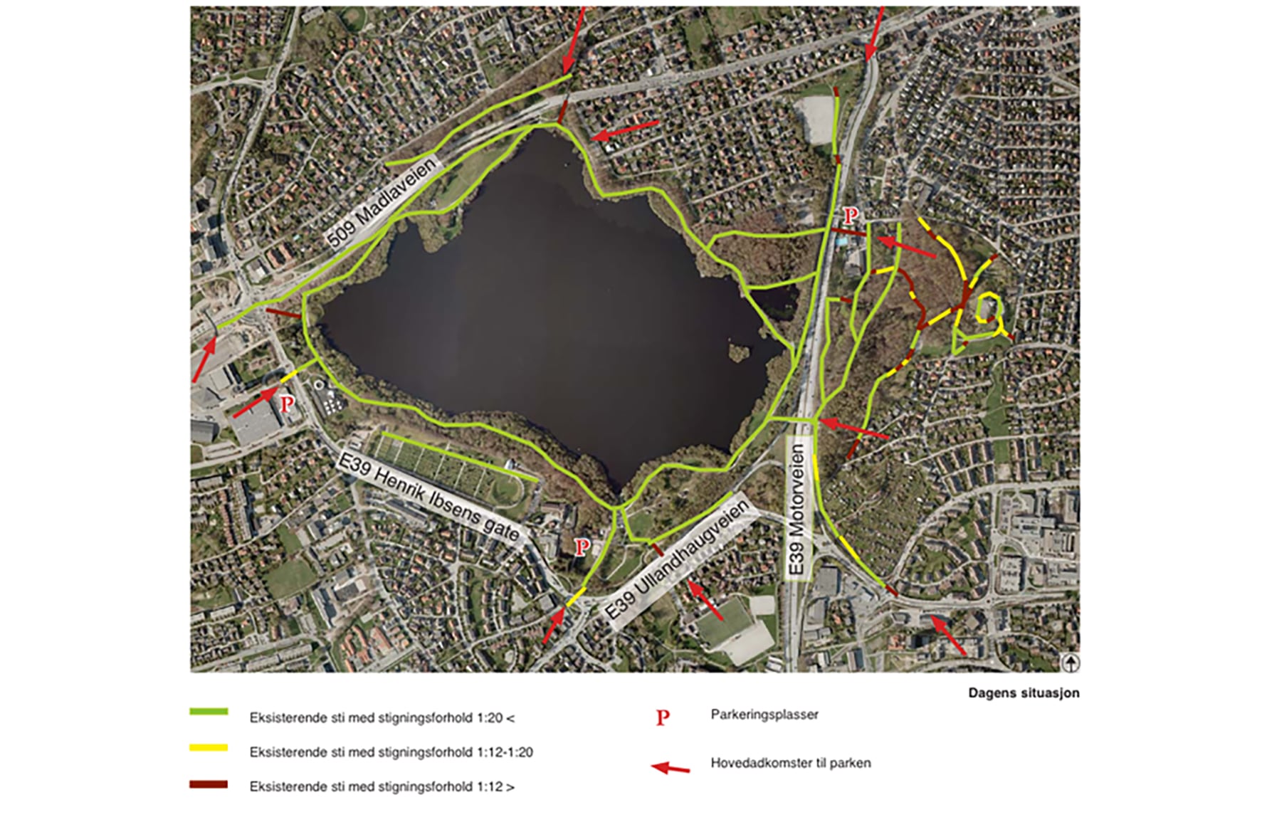 Toalett: Ingen offentlige toaletter, men adgang til toalett for brukere av Mosvangen Camping, Gamlingen, Stavanger Kunstmuseum og Mostun natursenter.