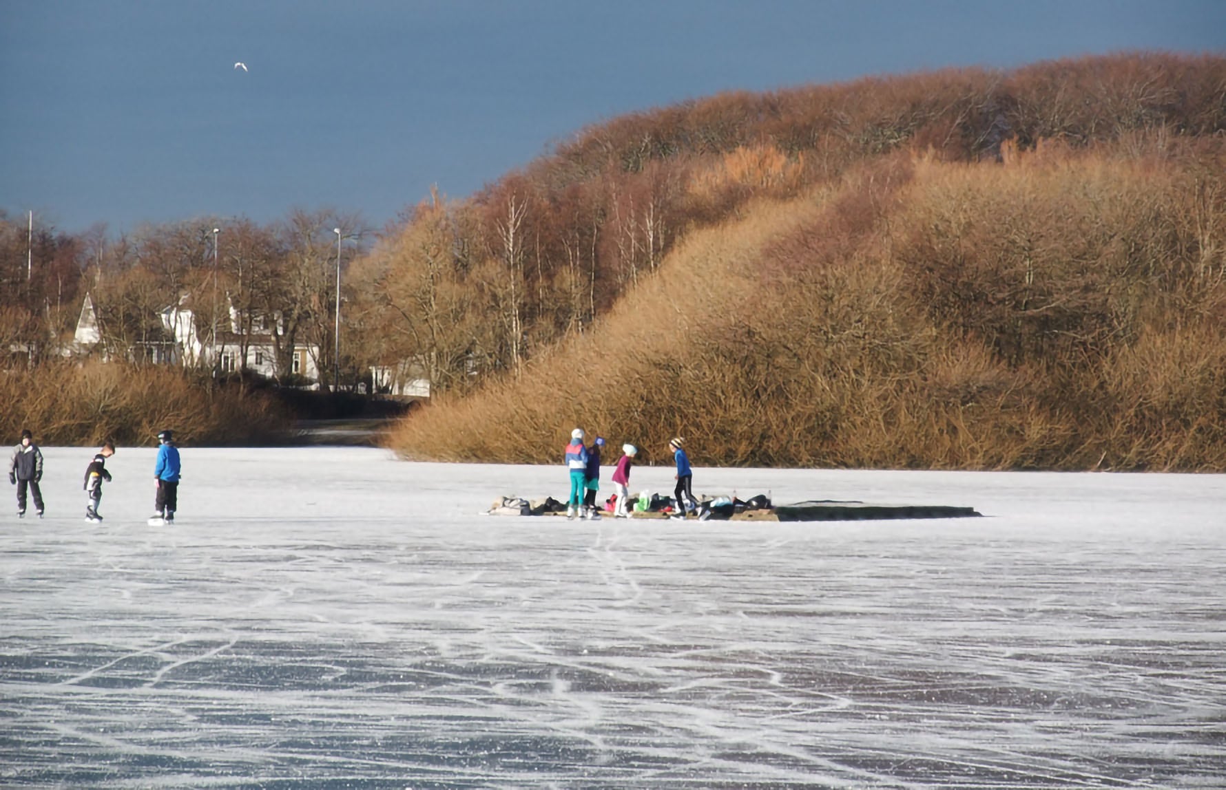 Lek og moro på islagt vatn. Foto: Erik Thoring.