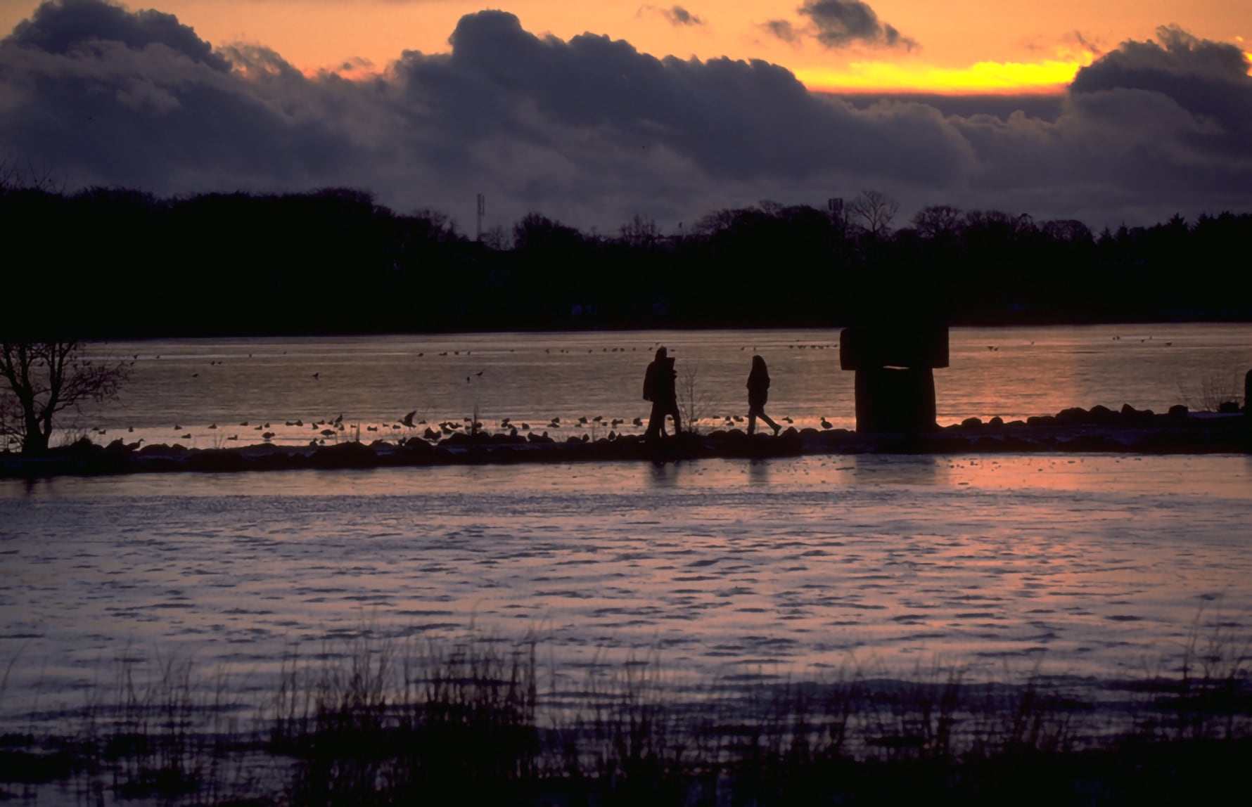 Turgåere i kveldsstemning over Mosvatnet. Foto: Erik Thoring.